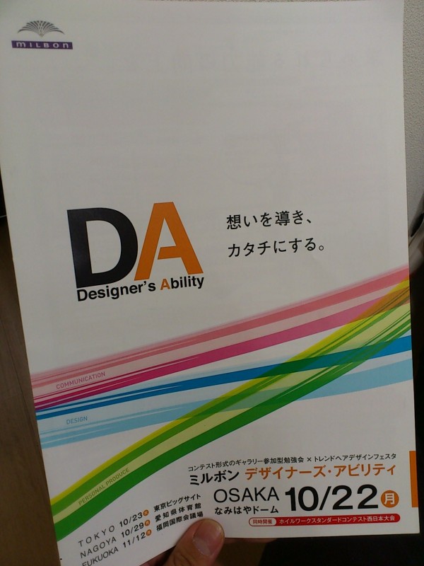 DA!! 2012.10.18 福崎店 来週の月曜日にミルボン主催のコンクールに出場します モデルさんを使ってカウンセリングから施術まで普段サロンでやっていることを そのままコンクールにした感じの大会です 僕自身モデルを使ってのコンクールが初めてなのですごく楽しみですが 毎日その事で頭いっぱい・・・。 でも、色々と考える事がめっちゃ勉強になるので DAを通じでさらなる進化をとげれるように頑張って来ます DAのもようは次回アップしまーす 川瀬☆★☆ « 前へ一覧へ 次へ »
